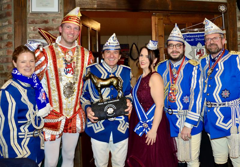 Übereicht wurde der Pokal durch Kommandeur Sascha Adrian und das Prinzenpaar der Landeshauptstadt Düsseldorf, Prinz Marcus I. und Venetia Nicole, im Rahmen eines gemütlichen Beisammenseins auf Gestüt Gut Neuhaus in Grevenbroich.